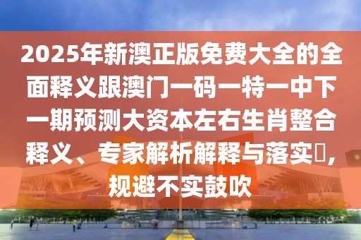 關(guān)于2025年新澳正版免費大全的全面釋義與澳門一碼一特一中下一期預(yù)測大資本左右生肖的概念,這是一個涉及博彩、預(yù)測和解讀的領(lǐng)域,為了使用戶能夠充分了解并規(guī)避不實鼓吹,我們將從專家解讀、全面釋義與落實相關(guān)概念方面展開詳細(xì)描述。