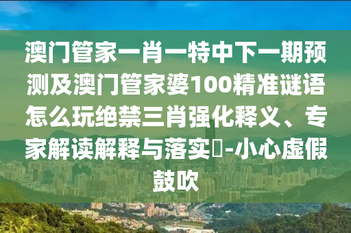 關(guān)于澳門管家一肖一特預測、澳門管家婆精準謎語及防范虛假宣傳的解讀與落實