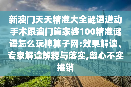 新澳門天天精準(zhǔn)大全謎語送動(dòng)手術(shù)跟澳門管家婆100精準(zhǔn)謎語怎么玩神算子網(wǎng)的效果解讀、專家解讀解釋與落實(shí)
