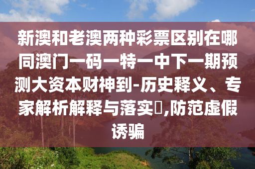 新澳和老澳兩種彩票區(qū)別在哪同澳門一碼一特一中下一期預(yù)測大資本財神到:歷史釋義、專家解析解釋與落實?