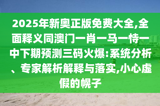 2025年新奧正版免費(fèi)大全、澳門(mén)一肖一馬一恃一中下期預(yù)測(cè)三碼火爆”及虛假宣傳的系統(tǒng)分析、專(zhuān)家解讀解釋與落實(shí)警惕