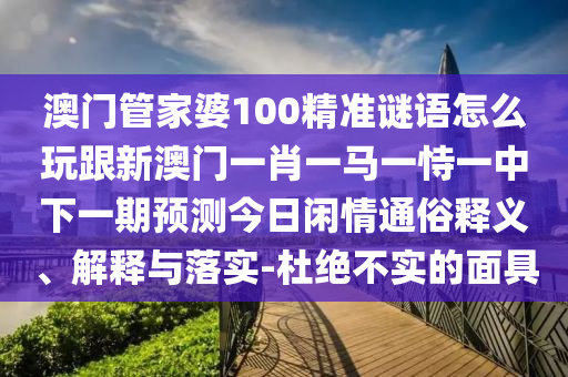 關(guān)于澳門管家婆100精準(zhǔn)謎語、新澳門一肖一馬預(yù)測與警惕虛假宣傳的通俗解釋與落實(shí)