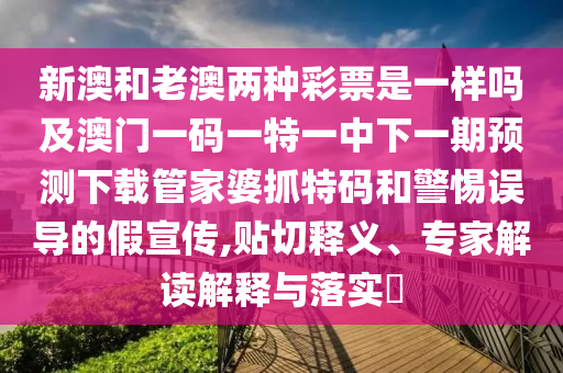 新澳和老澳兩種彩票是一樣嗎及澳門一碼一特一中下一期預(yù)測下載管家婆抓特碼和警惕誤導(dǎo)的假宣傳,貼切釋義、專家解讀解釋與落實(shí)?