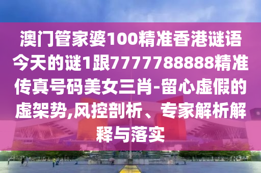 澳門管家婆100精準香港謎語今天的謎1跟7777788888精準傳真號碼美女三肖-留心虛假的虛架勢,風控剖析、專家解析解釋與落實