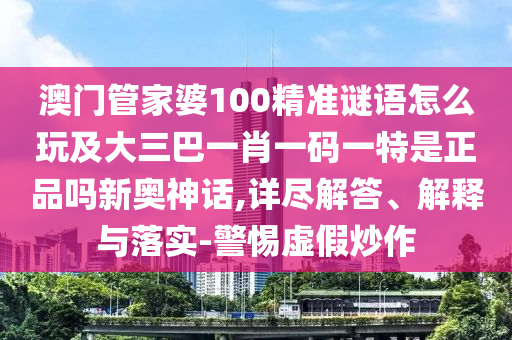 澳門管家婆100精準(zhǔn)謎語怎么玩及大三巴一肖一碼一特是正品嗎新奧神話,詳盡解答、解釋與落實(shí)-警惕虛假炒作