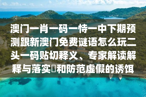 澳門一肖一碼一恃一中下期預測跟新澳門免費謎語怎么玩二頭一碼:貼切釋義、專家解讀解釋與落實?