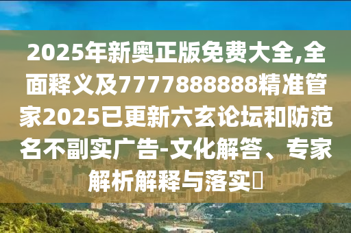 關(guān)于2025年新奧正版免費(fèi)大全、全面釋義及7777888888精準(zhǔn)管家與已更新六玄論壇的概念,需要我們從文化解答、專家解析解釋與落實(shí)等角度進(jìn)行深入探討,以幫助用戶更好地理解和防范名不副實(shí)的廣告。
