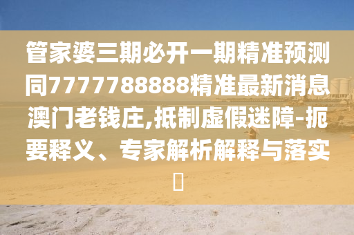 關(guān)于管家婆三期必開一期精準(zhǔn)預(yù)測同7777788888精準(zhǔn)最新消息澳門老錢莊的扼要釋義、專家解析解釋與落實,以及抵制虛假宣傳的警示