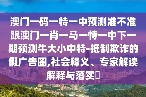 澳門一碼一特一中預(yù)測(cè)準(zhǔn)不準(zhǔn)跟澳門一肖一馬一恃一中下一期預(yù)測(cè)牛大小中特-抵制欺詐的假?gòu)V告圈,社會(huì)釋義、專家解讀解釋與落實(shí)?
