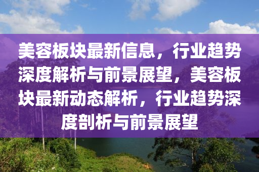 隨著時代的發(fā)展,美容行業(yè)已經成為全球范圍內蓬勃發(fā)展的產業(yè)之一,美容板塊涌現(xiàn)出眾多最新信息,本文將從新聞報道的視角出發(fā),結合個人見解,對美容行業(yè)的最新動態(tài)進行深入剖析,并對未來發(fā)展趨勢進行展望。