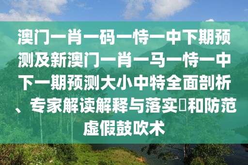 關(guān)于澳門一肖一碼一恃一中下期預(yù)測(cè)及新澳門一肖一馬一恃一中下一期預(yù)測(cè)大小中特全面剖析、專家解讀解釋與落實(shí)——防范虛假宣傳