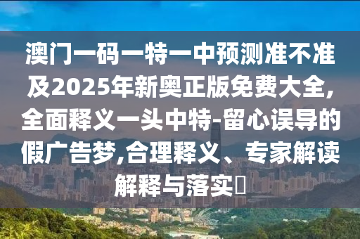 關(guān)于澳門一碼一特一中預(yù)測準(zhǔn)不準(zhǔn)及2025年新奧正版免費大全等相關(guān)內(nèi)容的全面釋義、專家解讀與落實,以及警惕虛假宣傳、合理釋義與留心誤導(dǎo)的假廣告夢
