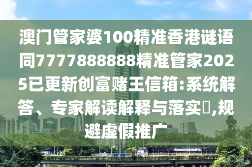 澳門管家婆100精準香港謎語同7777888888精準管家2025已更新創(chuàng)富賭王信箱:系統解答、專家解讀解釋與落實?,規(guī)避虛假推廣