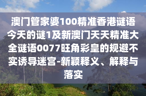 澳門管家婆100精準(zhǔn)香港謎語今天的謎1及新澳門天天精準(zhǔn)大全謎語0077旺角彩皇的規(guī)避不實(shí)誘導(dǎo)迷宮-新穎釋義、解釋與落實(shí)