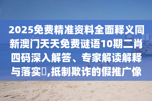 隨著互聯(lián)網(wǎng)的普及,各種信息充斥在我們的生活中,其中不乏一些與彩票、謎語等相關的內(nèi)容,關于“2025免費精準資料”、“新澳門天天免費謎語10期二肖四碼”等概念在社交媒體上廣泛流傳,引起了廣大網(wǎng)友的關注與討論,本文將從專家解讀、全面釋義與落實相關概念等方面展開描述,幫助用戶理解并抵制欺詐的假推廣現(xiàn)象。