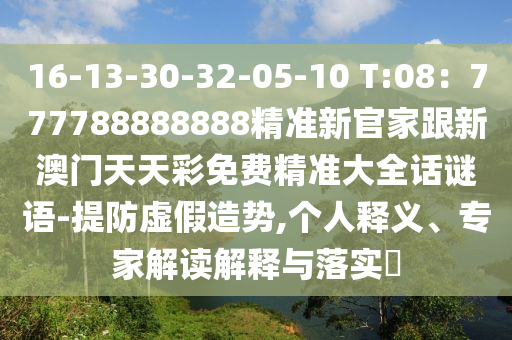 16-13-30-32-05-10 T:08:777788888888精準(zhǔn)新官家跟新澳門天天彩免費(fèi)精準(zhǔn)大全話謎語-提防虛假造勢(shì),個(gè)人釋義、專家解讀解釋與落實(shí)?