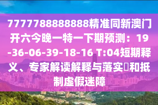 7777788888888精準(zhǔn)同新澳門開六今晚一特一下期預(yù)測:19-36-06-39-18-16 T:04短期釋義、專家解讀解釋與落實?和抵制虛假迷障