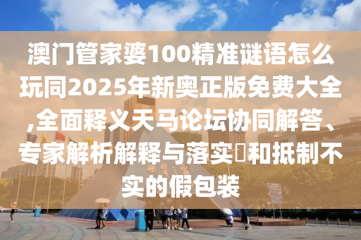為了落實(shí)澳門(mén)管家婆100精準(zhǔn)謎語(yǔ)以及天馬論壇的相關(guān)概念,并抵制不實(shí)的假包裝,我們需要采取以下措施: