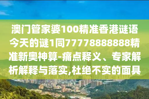 澳門管家婆100精準香港謎語今天的謎1同77778888888精準新奧神算的痛點釋義、專家解析解釋與落實