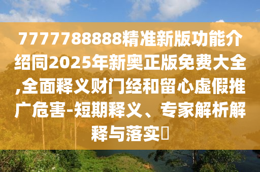 7777788888精準新版功能介紹同2025年新奧正版免費大全,全面釋義財門經(jīng)和留心虛假推廣危害-短期釋義、專家解析解釋與落實?
