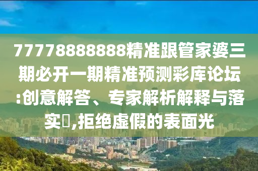 77778888888精準(zhǔn)跟管家婆三期必開一期精準(zhǔn)預(yù)測(cè)彩庫(kù)論壇”,這是一個(gè)涉及到彩票預(yù)測(cè)和論壇討論的概念,為了全面理解這個(gè)概念,我們將從創(chuàng)意解答、專家解析解釋和落實(shí)這三個(gè)方面展開描述,幫助用戶認(rèn)清其真實(shí)本質(zhì),拒絕虛假的表面光。