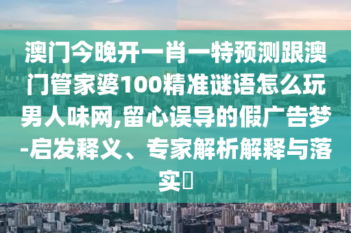 關(guān)于澳門今晚開一肖一特預(yù)測、澳門管家婆100精準(zhǔn)謎語及男人味網(wǎng)的相關(guān)解析與警惕虛假宣傳的啟示