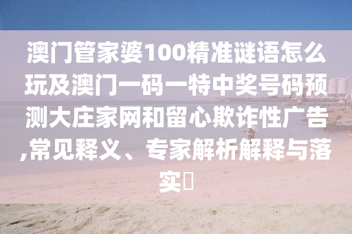 澳門管家婆100精準謎語及澳門一碼一特中獎號碼預(yù)測一直是博彩領(lǐng)域的熱門話題,對于想要了解這些內(nèi)容的讀者,本文將從全面釋義、專家解讀與落實、警惕虛假宣傳等方面進行解析描述。