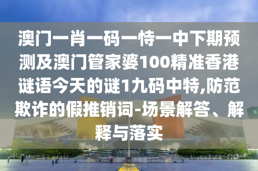 澳門一肖一碼一恃一中下期預測及澳門管家婆100精準香港謎語今天的謎1九碼中特:場景解答、解釋與落實