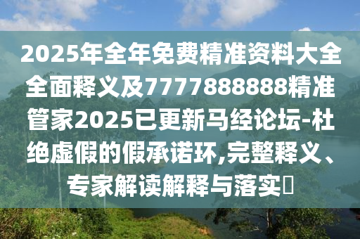 2025年全年免費精準資料大全全面釋義及7777888888精準管家2025已更新馬經(jīng)論壇:完整釋義、專家解讀解釋與落實?