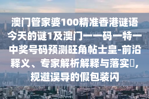 澳門管家婆100精準(zhǔn)香港謎語今天的謎1及澳門一一碼一特一中獎號碼預(yù)測旺角帖士皇的前沿釋義、專家解析解釋與落實?