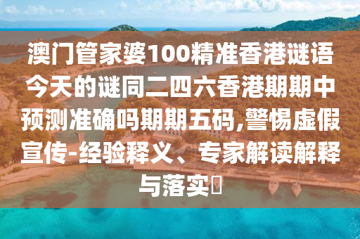澳門管家婆100精準(zhǔn)香港謎語今天的謎同二四六香港期期中預(yù)測準(zhǔn)確嗎期期五碼的經(jīng)驗釋義、專家解讀解釋與落實?