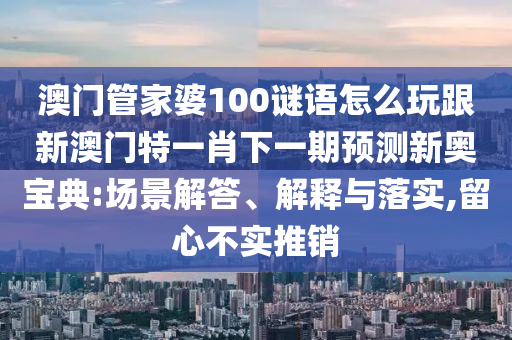 關(guān)于關(guān)鍵詞“澳門管家婆100謎語怎么玩”、“新澳門特一肖下一期預(yù)測”、“新奧寶典”和“留心不實推銷”,我可以為您提供場景解答、解釋與落實的內(nèi)容如下: