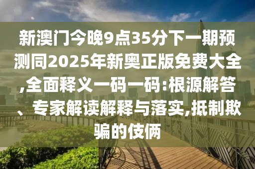 新澳門今晚9點(diǎn)35分下一期預(yù)測同2025年新奧正版免費(fèi)大全,全面釋義一碼一碼的根源解答、專家解讀解釋與落實(shí)