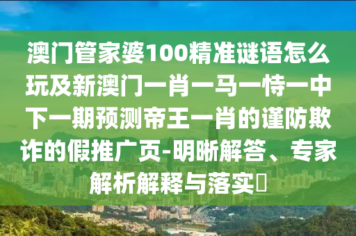 關(guān)于澳門管家婆100精準(zhǔn)謎語(yǔ)及新澳門一肖一馬預(yù)測(cè)帝王一肖的解析與警惕虛假宣傳