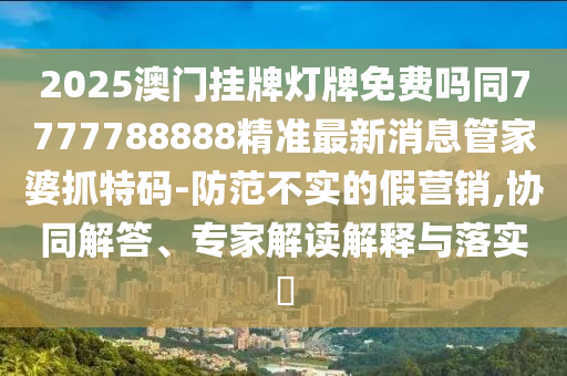 關(guān)于澳門掛牌燈牌是否免費(fèi)、最新消息管家婆抓特碼協(xié)同解答等問題的全面釋義、解釋與落實(shí)——防范不實(shí)的假營銷