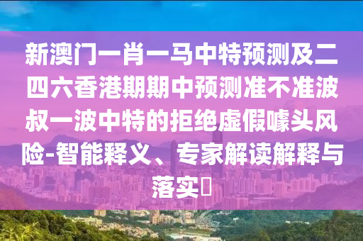 新澳門一肖一馬中特預測及二四六香港期期中預測準不準波叔一波中特:智能釋義、專家解讀解釋與落實?