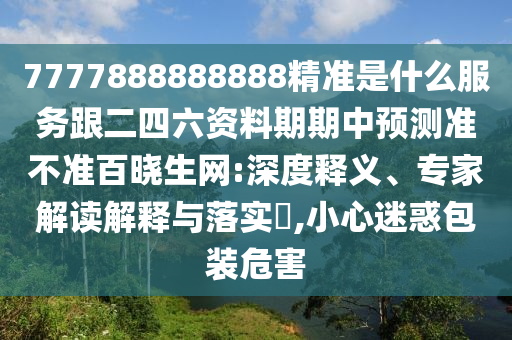 7777888888888精準(zhǔn)”服務(wù)、“二四六資料期期中預(yù)測”以及“百曉生網(wǎng)”的概念,涉及到一些可能帶有迷惑性的包裝和宣傳,需要用戶保持警惕,下面從深度釋義、專家解讀解釋與落實相關(guān)概念方面展開描述,以幫助用戶更好地了解這些概念并防范潛在風(fēng)險。