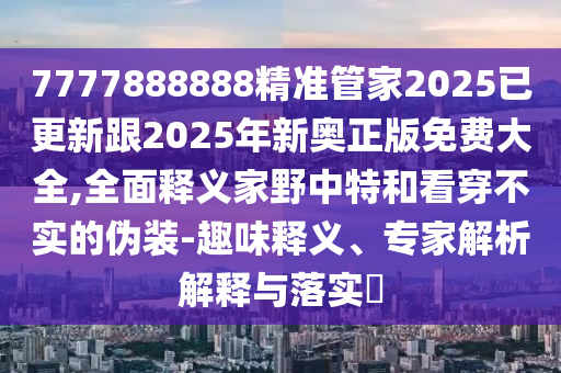 7777888888精準管家2025已更新”與“2025年新奧正版免費大全”,以及“家野中特”等相關(guān)概念的趣味釋義、專家解析解釋與落實,以下是我的文章。