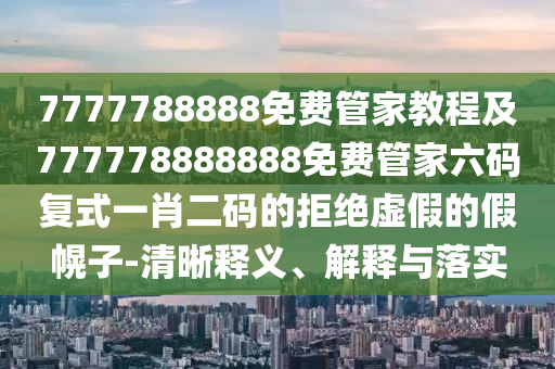 關(guān)于關(guān)鍵詞“7777788888免費(fèi)管家教程”、“777778888888免費(fèi)管家六碼復(fù)式一肖二碼”以及“拒絕虛假的假幌子”的全面釋義、解釋與落實如下:
