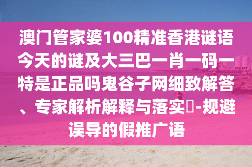 澳門管家婆100精準(zhǔn)香港謎語今天的謎及大三巴一肖一碼一特是正品嗎鬼谷子網(wǎng)細(xì)致解答、專家解析解釋與落實?-規(guī)避誤導(dǎo)的假推廣語