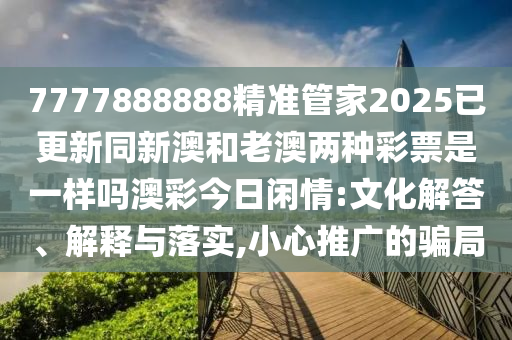 關(guān)于關(guān)鍵詞“7777888888精準(zhǔn)管家2025已更新同新澳和老澳兩種彩票是一樣嗎澳彩今日閑情”的文化解答、解釋與落實,以及對于推廣騙局的小心提醒,以下是我的理解和闡述: