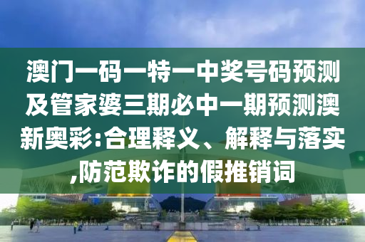 澳門一碼一特一中獎號碼預(yù)測及管家婆三期必中一期預(yù)測澳新奧彩:合理釋義、解釋與落實(shí),防范欺詐的假推銷詞