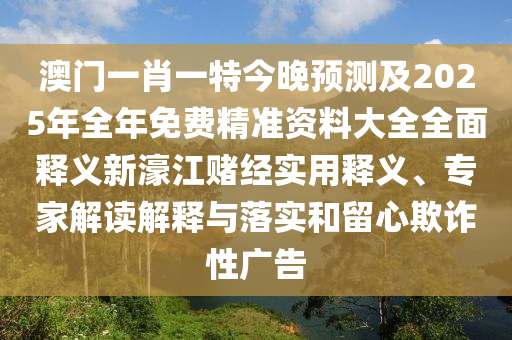 關(guān)于澳門一肖一特今晚預(yù)測及2025年全年免費(fèi)精準(zhǔn)資料大全的全面釋義、解釋與落實(shí)