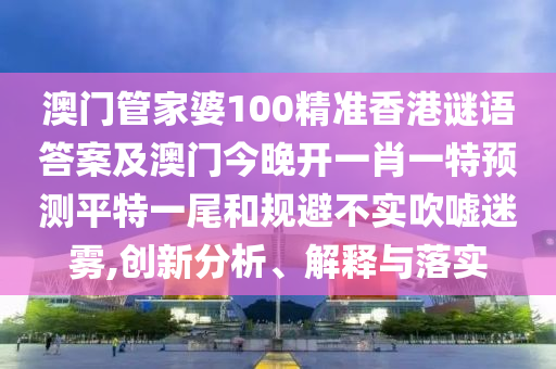 澳門管家婆100精準(zhǔn)香港謎語答案及澳門今晚開一肖一特預(yù)測(cè)平特一尾和規(guī)避不實(shí)吹噓迷霧,創(chuàng)新分析、解釋與落實(shí)