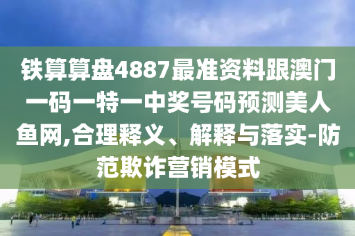 針對關鍵詞“鐵算算盤、4887最準資料、澳門一碼一特一中獎號碼預測、美人魚網”,我們需要全面理解其含義和用途,并警惕可能的虛假宣傳和欺詐營銷模式,我們需要落實到實際行動中,選擇信譽良好的網站和服務,提高自我保護意識,增強公眾對于彩票等博彩游戲的認知,以及互聯(lián)網信息的辨別能力,通過公眾教育,提高全社會對于防范欺詐行為的意識,共同營造一個安全、誠信的社會環(huán)境。