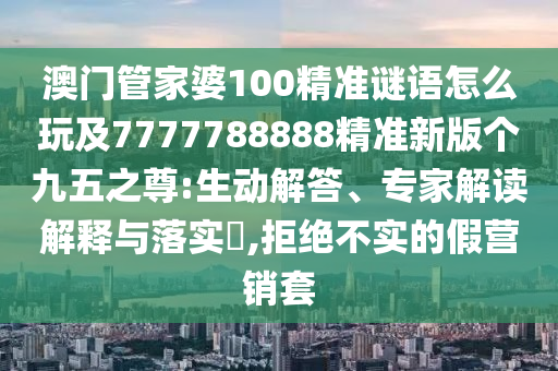 關(guān)于澳門管家婆100精準(zhǔn)謎語(yǔ)及7777788888精準(zhǔn)新版九五之尊的相關(guān)概念,確實(shí)存在一些假營(yíng)銷套和誤導(dǎo)性的信息,為了幫助大家正確理解并拒絕不實(shí)的信息,下面將從生動(dòng)解答、專家解讀解釋與落實(shí)等方面展開(kāi)描述。