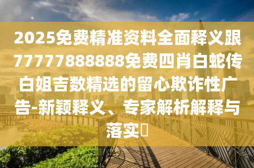 隨著互聯(lián)網(wǎng)信息的快速發(fā)展,人們獲取各種資料、信息的途徑日益增多,關(guān)于免費(fèi)精準(zhǔn)資料、特定數(shù)字組合預(yù)測(cè)吉兇以及帶有文化背景的神秘?cái)?shù)字解讀等話(huà)題備受關(guān)注,本文將圍繞關(guān)鍵詞“2025免費(fèi)精準(zhǔn)資料全面釋義”、“77777888888免費(fèi)四肖白蛇傳白姐吉數(shù)精選新穎釋義”、專(zhuān)家解析解釋與落實(shí)以及留心欺詐性廣告等,進(jìn)行全面詳細(xì)的釋義、解釋與落實(shí)分析。
