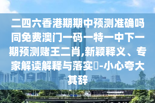 關(guān)于二四六香港期期中預(yù)測(cè)準(zhǔn)確嗎同免費(fèi)澳門一碼一特一中下一期預(yù)測(cè)賭王二肖的概念,涉及到彩票預(yù)測(cè)、賭博運(yùn)勢(shì)等領(lǐng)域,需要謹(jǐn)慎對(duì)待,本文將從新穎釋義、專家解讀、落實(shí)相關(guān)概念及小心夸大其辭等方面展開描述,以幫助讀者更好地理解這一概念。