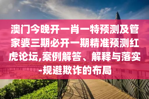關(guān)于澳門今晚開(kāi)一肖一特預(yù)測(cè)及管家婆三期必開(kāi)一期精準(zhǔn)預(yù)測(cè)紅虎論壇的案例解答、解釋與落實(shí),以及如何規(guī)避欺詐布局的問(wèn)題,這是一個(gè)涉及到博彩預(yù)測(cè)領(lǐng)域的話題,以下從不同角度進(jìn)行解析。