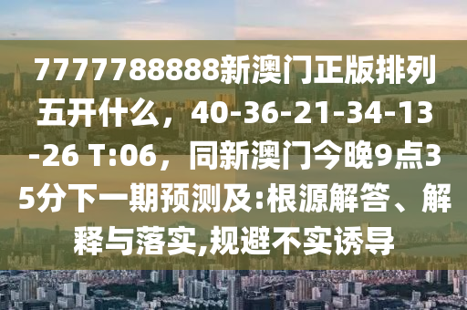 關(guān)于關(guān)鍵詞“7777788888新澳門正版排列五開什么,40-36-21-34-13-26 T:06,同新澳門今晚9點(diǎn)35分下一期預(yù)測及規(guī)避不實(shí)誘導(dǎo),根源解答、解釋與落實(shí)”,我們可以從以下幾個(gè)方面來進(jìn)行解析和描述: